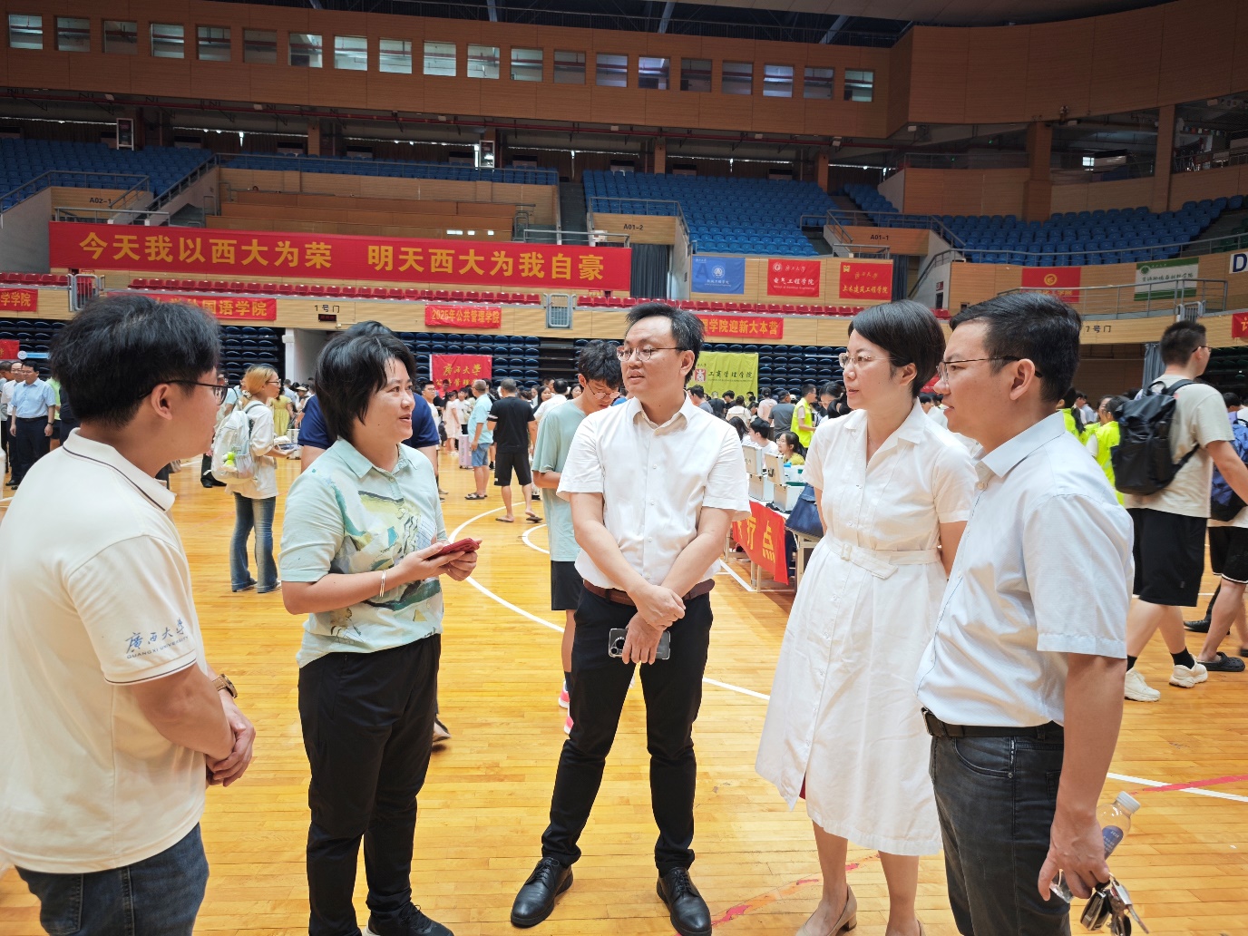 学院领导高度重视此次迎新工作。学院常务副院长秦祖赠,党委副书记刘丽,副院长江俊等一行亲临报到现场,看望新生及家长,慰问一线工作人员,详细了解报到进展,并与大家亲切交流。